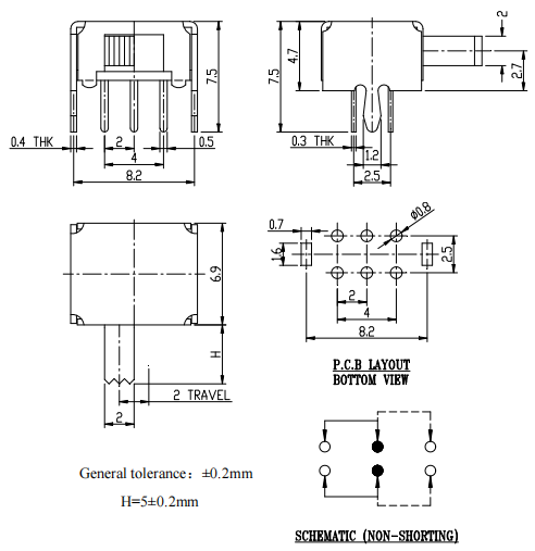 Interruptor deslizante 4P2T de ângulo reto com 2 cursosPróxima: