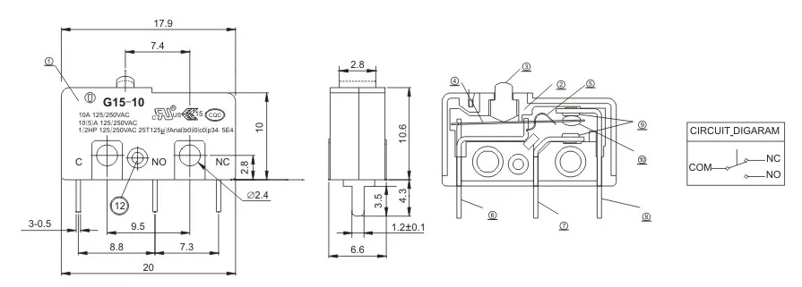 ENEC 3 pin micro limit micro pressure switch 40t85 5e4 ip67 |