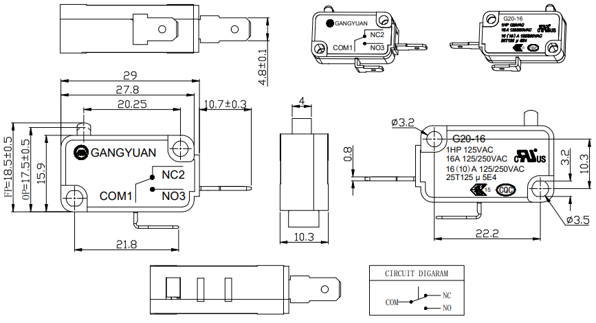 Este microinterruptor pode transportar com segurança 16 A de corrente, pode atender facilmente aos requisitos de trabalho de vários equipamentos elétricos e garantir efetivamente a operação suave e o uso seguro do circuito.