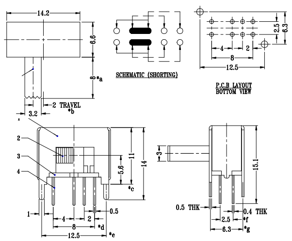 Através do furo Dip 4 polos 6*6 interruptor de tato consulte Mais informação